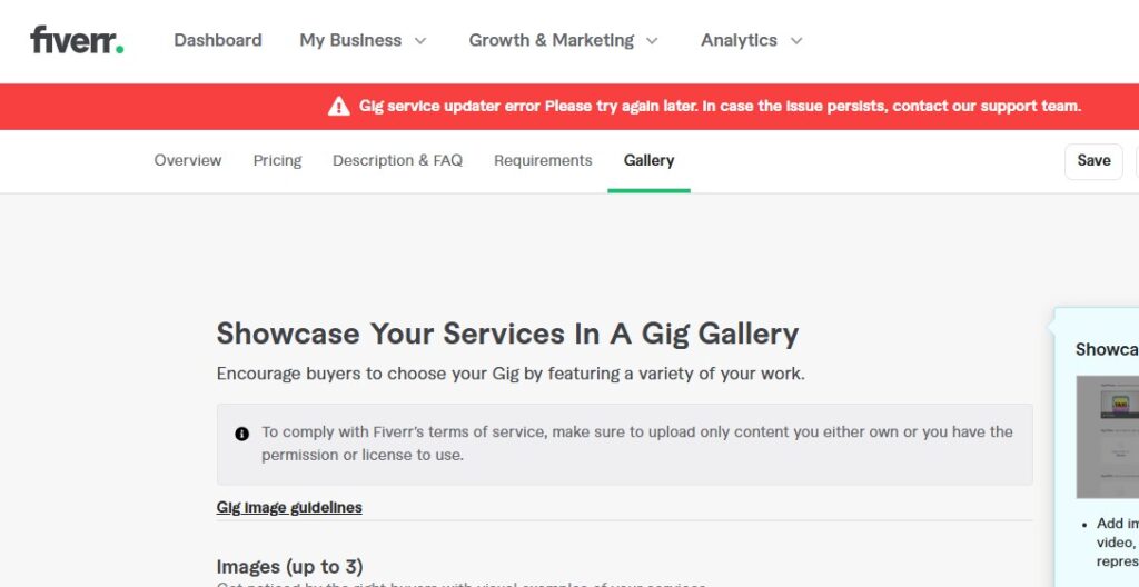 If you’re trying to update or publish your Fiverr gig and get the message —“Gig service updater error. Please try